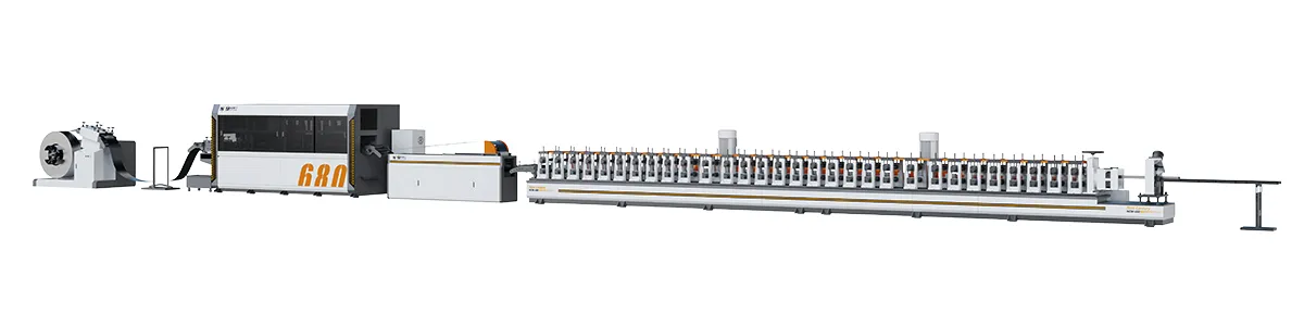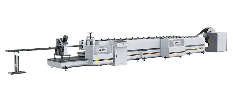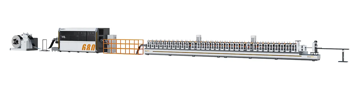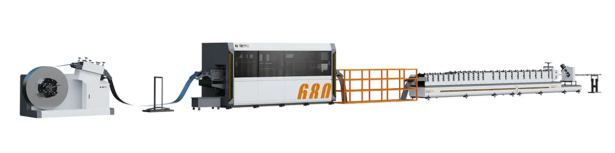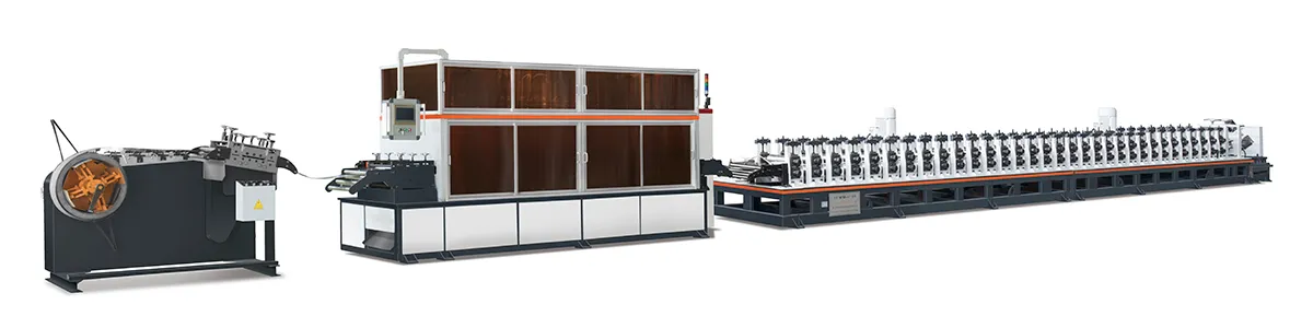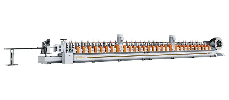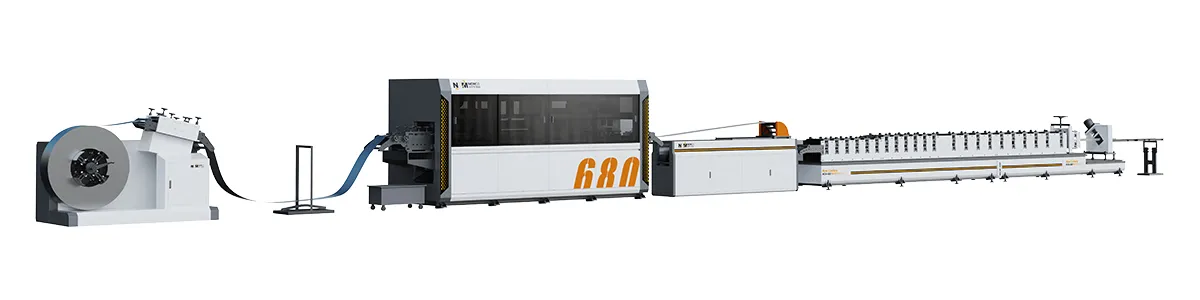 Dây chuyền sản xuất khung cửa thép tự động sẽ thực hiện gia công tự động các loại khung cửa bằng thép và thép không gỉ, bao gồm tạo hình khung một bước, đột lỗ và cắt đoạn, thông qua dập thủy lực. Nhờ áp dụng quy trình đột trước, giúp tránh tình trạng một số loại khung cửa không thể đột lỗ sau khi đã tạo hình. Dây chuyền sản xuất khung cửa thép có thể vừa cán tạo hình vừa lưu trữ vật liệu đồng thời mà không bị gián đoạn, đảm bảo tối đa hiệu suất của máy cán và hiệu suất tổng thể của toàn dây chuyền. Về lưu trữ vật liệu, chúng tôi cung cấp hai tùy chọn: bộ lưu trữ và phương án lưu trữ dạng hố.