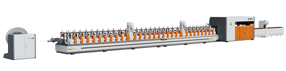 Dây chuyền sản xuất khung cửa thép tự động sử dụng công nghệ uốn nguội để tạo hình một bước cho nhiều loại khung cửa bằng thép và thép không gỉ. Thông qua đột dập và cắt thủy lực, dây chuyền tự động hóa quy trình tạo lỗ và cắt mặt cắt. Dây chuyền sản xuất cửa kim loại này áp dụng kỹ thuật đột lỗ sau, giúp tránh tình trạng một số lỗ không thể đột hoặc bị biến dạng trong quá trình tạo hình. Bằng cách thực hiện tạo hình trước rồi mới đột lỗ, dây chuyền giúp giảm thiểu các thay đổi đối với máy cán tạo hình, từ đó thuận tiện hơn cho việc tùy chỉnh các máy đơn lẻ trong dây chuyền. Ngoài ra, chúng tôi cung cấp hai lựa chọn lưu trữ vật liệu: bộ lưu trữ và hố lưu trữ, tùy theo yêu cầu cụ thể của khách hàng.