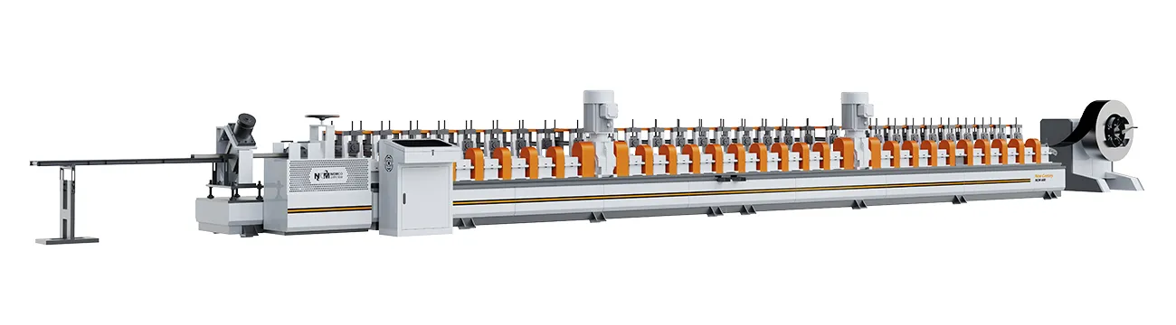 Máy cán tạo hình khung cửa thép NCM-500D có thể dùng để tạo hình nhiều loại khung cửa bằng thép và thép không gỉ. Thiết bị có thể gia công vật liệu kim loại có độ dày 0.8-2.0 mm thành khung cửa với nhiều quy cách và hình dạng khác nhau. Máy tạo hình cửa kim loại có tốc độ sản xuất 0-12m/phút. Một người có thể hoàn tất toàn bộ thao tác vận hành trên thiết bị, và máy có thể tạo ra các dạng khung mà một số phương pháp chấn gập không thể thực hiện được.
