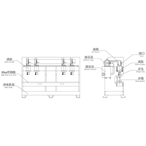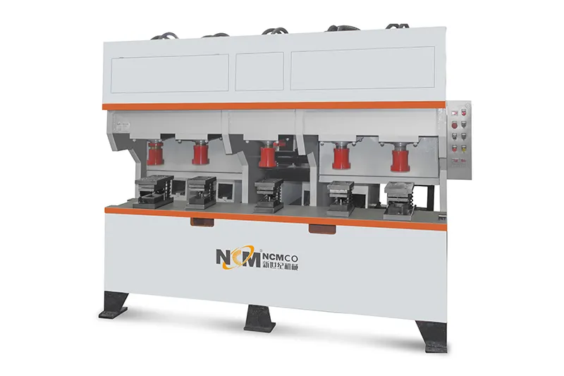 Máy đột dập thủy lực nhiều đầu NCM-150 được dùng để đột và tạo hình một bước nhiều loại lỗ trên khung cửa bằng thép và thép không gỉ, bao gồm lỗ khóa/lỗ bản lề/lỗ lắp đặt/rãnh khía chấn, v.v. Máy sử dụng áp lực thủy lực để đột lỗ khung cửa. Thân máy được chế tạo từ thép tấm hàn, có kết cấu xi lanh thủy lực độc lập và nhiều đầu đột. Lực đầu ra tối đa của xi lanh thủy lực chính đạt 150 kN, và máy sử dụng hệ thống điều khiển PLC. Tất cả các lỗ và rãnh/khía có thể được tạo hình trong một lần, giúp nâng cao hiệu suất sản xuất.